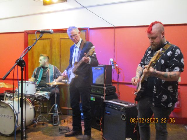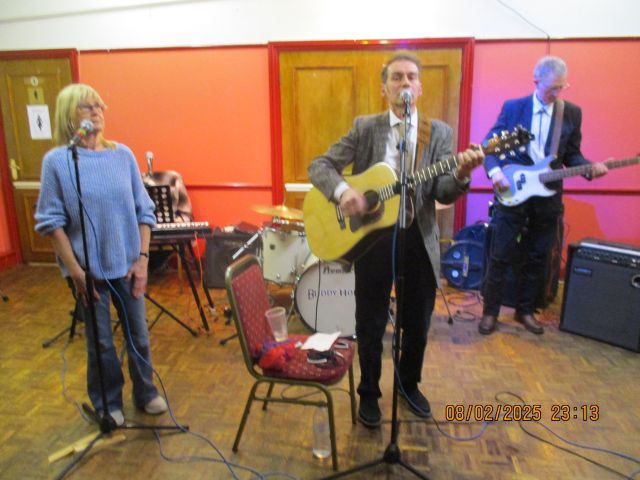 on Saturday 8th February 2014 Torrential rain and winds could not keep people packing the hall for another brilliant evening of rock'n'roll with the Rob Family Band, the Beverly Brothers (George & Richard) and the Rosewood & Steel Trio (Neil, Steve & Andy) Click 'Gallery' above to go back to where you came from |